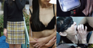 真面目な女性のようなファッションでディルドをエロく舐める